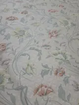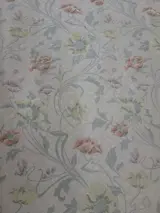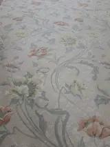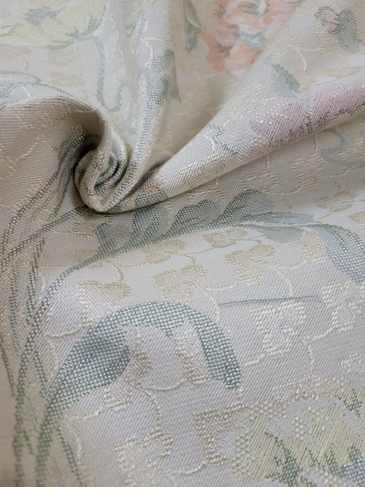 Schitterende Italiaanse damaststof in San Leucio-stijl op een neutrale achtergrond, met prachtige bloemendecoraties gemaakt in een klassieke stijl met zachte en zeer delicate kleuren, gekenmerkt door een iriserende helderheid die de stof een glanzend achtergrondeffect en ondoorzichtig ontwerp geeft, typisch voor het damast stof en geeft kwaliteit, elegantie en verfijning.