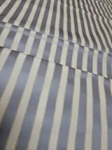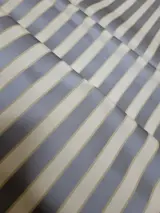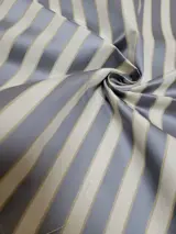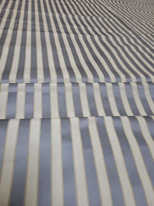 Prachtige stof in Piquet-stijl Made in Italy. De stof wordt gekenmerkt door banen die in een verticale lijn zijn gerangschikt, met de overheersing van ivoor en luchtmachtblauw (grijsblauw) met kleine gouddraadjes, zeer delicaat, met name de luchtmachtbanden hebben een mat-glanzend effect wat de stof elegant maakt , en effectief.