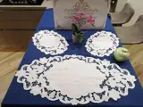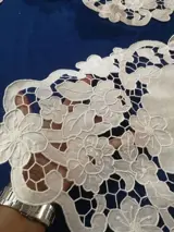 3-delige set kleedjes van zuiver linnen, met de hand geborduurd met opengewerkt werk en cordonsteek.