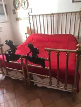 De periode is Luigi Filippo eind 1800/begin 1900. Imposant bedekt het bed aan de zijkanten tot op de grond en is helemaal met de hand geborduurd. Meet 230 cm bij 200 cm voorbij de pony.