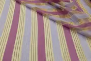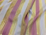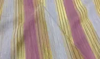 Gordijn gesneden in hoogwaardige lichte organza afgewisseld met gestreepte linnen mix banden van de Miglioretti Chieri Manufacture (TO) Italië.