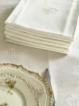 Set van 7 zeer mooie damastlinnen servetten van zeer goede kwaliteit. Erg wit.