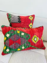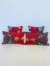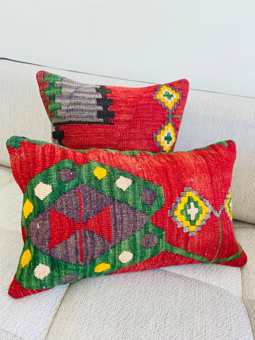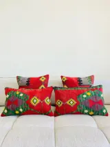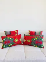 Etnische kussenset van 4. Kussens gemaakt van luxe handgeweven kelim (% 100 wol). De achterkant is gemaakt van de zachtste katoenen linnen stof.