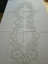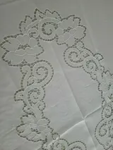 Elegant tafelkleed x 12 (inclusief 12 linnen servetten) in 100% puur linnen met handgesneden en satijnsteekborduurwerk