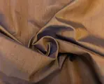Iriserende bronskleurige stof, zacht, licht en bestendig, die bovendien niet kreukt.
