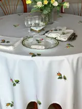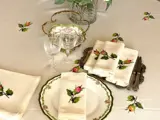 Een dunne zoomlijn rond het tafelkleed en servetten.