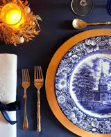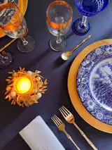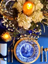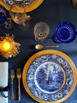 Tafelkleed voor grote tafels, nachtblauw, in een canvasstof van uitzonderlijke kwaliteit en met een patroon.