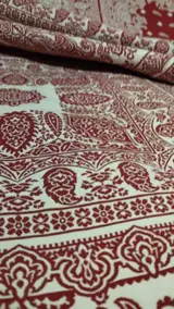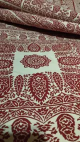 De stof met warme en effen kleuren en majolica patroon in dubbel recht, wordt geleverd in dubbele hoogte, uitstekende oplossing voor gordijnen, spreien, bekledingen en / of scenografische gordijnen