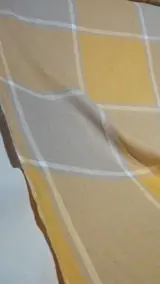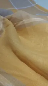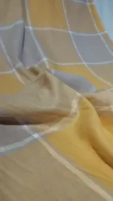 De warmgekleurde stof heeft een modern vierkant dessin, een uitstekende oplossing voor gordijnen, overtrekken en/of scenografische gordijnen of kleding