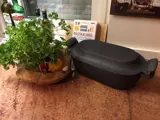 Maten zijn circa: hoog met deksel 15 cm x breed / lang 44 (incl, grepen) pan 33 cm x diep 20 cm.