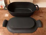 Zeer zwaar en robuust en kan ook nog zo boven het vuur worden gebruikt en kan zo vol in de oven.