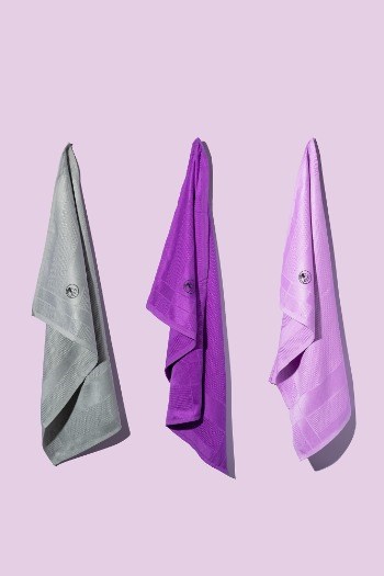 1 set bestaat uit 3 doekjes (grijs, paars en lila)