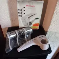 Westmark Trommelrasp met 3 snijtrommels Trommelrasp Vaatwasser veilig Materiaal: Kunststof, RVS - Het snijden van diverse soorten groente en noten doe je met deze Trio trommelrasp van Westmark. Deze handige trommelrasp heeft 3 verschillende trommels met diverse snijbladen. De extreem scherpe messen snijden door de meest harde groente- en notensoorten. Het apparaat is eenvoudig in gebruik -. Plaats de gewenste trommelrasp in de houder en draai vervolgens aan de hendel. Het resultaat is een mooi g ...