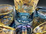 Luxe whiskyglazen rondom fraai gedecoreerd met pantograaf met arabeskmotieven in 24Kt goud. Verlicht door een intens kobaltblauw en rijk aan metaalachtige reflecties, een echte betovering geschonken door de bekwame en deskundige handen van ambachtslieden die, volgens de Murano-school, er altijd naar streven onze gasten aan tafel te verbazen.