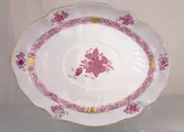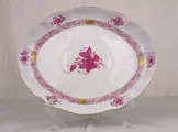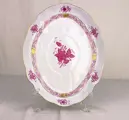 Elegant middelpunt van de HEREND-productie, een van de meest prestigieuze in Europa, in een van de beroemdste decoraties, de Apponyi, gemaakt in de vroege jaren 1900 voor de Hongaarse graaf Albert Apponyi en voor het eerst gebruikt tijdens een lunch in het Elysée ter ere van de keizer van Oostenrijk Franz Joseph en sindsdien nieuw leven ingeblazen in verschillende kleuren, waaronder de beroemde in paars.