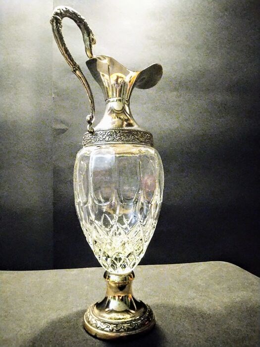 Mooie en elegante Italiaanse kan uit de jaren 60. Verzilverd met geëtst kristalglas.Zilvergehalte 800-1000.