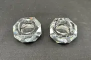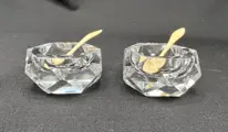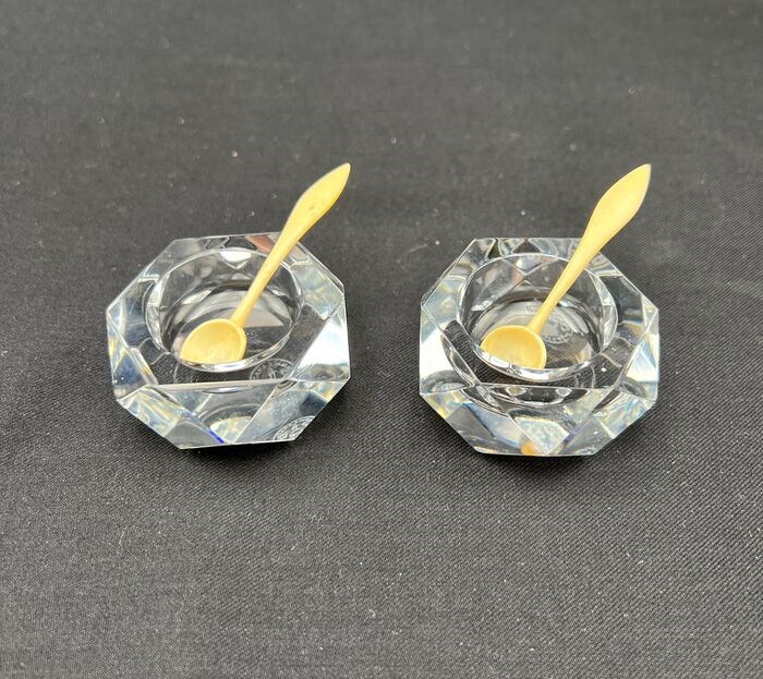 Prachtig paar Crystal Salerons vergezeld van zijn theelepels, gestempeld door het prestigieuze Baccarat-huis, verfijnd met sprankelend kristal, goede algemene staat.