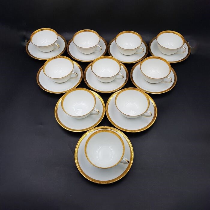 Een set van 10 prachtige theekopjes of koffiekopjes van Bernardaud, een van de meest (zo niet de meest) prestigieuze Franse productie van Limoges-porselein.