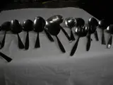 Bestek - lepels - vorken enz .- 0,25 Per stuk ,- 75- vorken- 75- lepels- 40 messen--15- dessert lepels- 1 - botermesje -- theelepels, 0,15 per stuk- 1,- per stuk , - 17- div. Opscheplepels- BESTEKBAK: 6,50 PER STUK, , 5 aanwezig