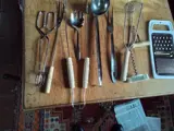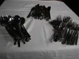 Bestek - lepels - vorken - messen enz .- 0,25 Per stuk ,- 75- vorken- 75- lepels- 50- messen, 0,35 per stuk--15- dessert lepels- 1 - botermesje -- theelepels- 1,- per stuk , - 17- div. Opscheplepels- BESTEKBAK: 5,-, 2 aanwezig