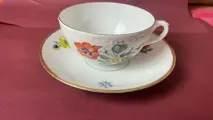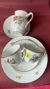 Koffie/thee servies van Bing en Groendahle/ Royal Copenhagen, motief "Saksische bloem"