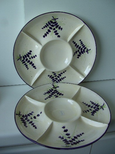 En zijn handgeschilderd gedecoreerd met lavendel takjes.