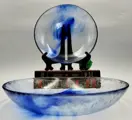 Prachtige soepsalade service zeer zeldzaam om 6 te vinden in handgeblazen blauw glas van de historische Bormioli Rocco glasfabriek