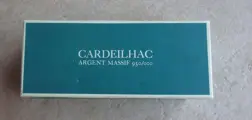 4 Cardeilhac zoutvaatjes gesigneerd Christofle goudsmeden onder de voet in hun originele verpakking. In kristal en massief zilver zullen ze daarom ideaal zijn voor een mooie tafel. Ze zijn 4 centimeter hoog en 2 centimeter in doorsnee. Ze zijn geproduceerd tussen 1970/80.