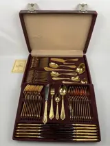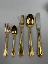 Dit vergulde bestek wordt aangeboden door de firma 'Carl Schmidt & Sohn' uit Solingen in Duitsland.