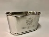 Grote vernikkelde kom in ovale vorm voor champagne- of wijnflessen met aan twee zijden gegraveerde tekst van Lily Bollinger en Napoleon Bonaparte.