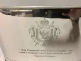 Grote vernikkelde kom in ovale vorm voor champagne- of wijnflessen met aan twee zijden gegraveerde tekst van Lily Bollinger en Napoleon Bonaparte.