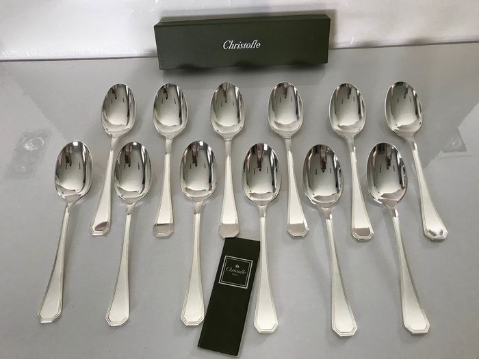 Set van 12 Christofle model America koffielepels in zilver metaal.