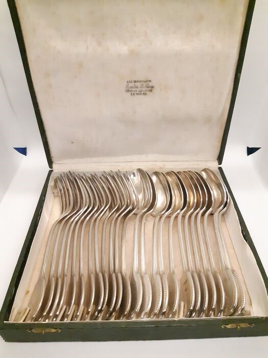 Servies 12 personen Christofle 12 vorken en 12 lepels voor verzamelaar of liefhebber.