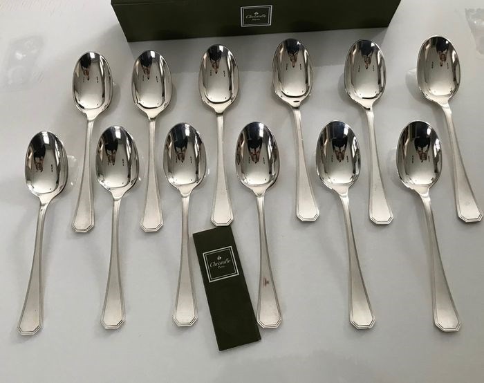 Set van 12 dessertlepels Christofle America model in verzilverd metaal.