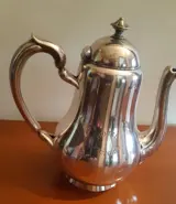 Mooie grote koffiekan, in Christofle verzilverd metaal, met het Hotel Victoria logo en keurmerk van het bekende merk op de voet.