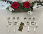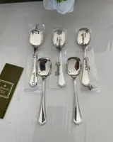 Set van 10 Christofle ijsschepjes van het model Spatours in zilverkleurig metaal, waarvan 6 in de originele gesealde verpakking.
