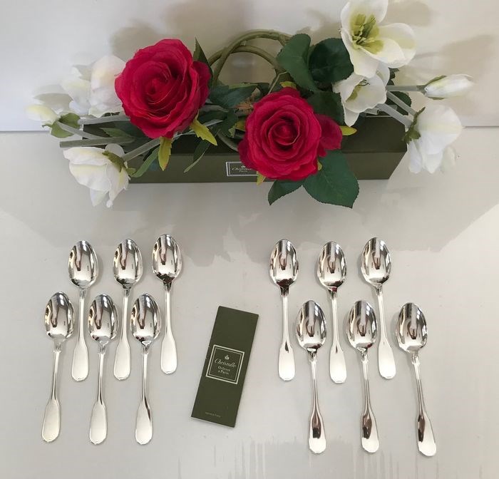 Set van 12 Christofle koffielepels model Versailles in zilver metaal.