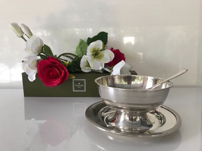Sauskom en sauslepel Christofle model America in zilver metaal.