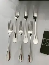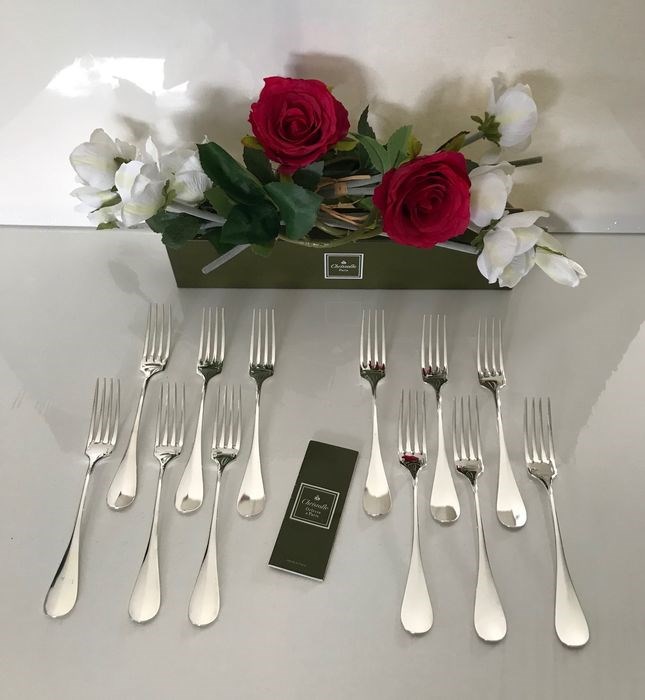 Set van 12 Christofle dessertvorkjes Fidelio model medaillon met zilverkleurig metalen monogram.