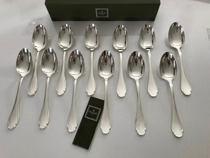 Set van 12 Christofle mokka lepels model Pompadour in zilver metaal.