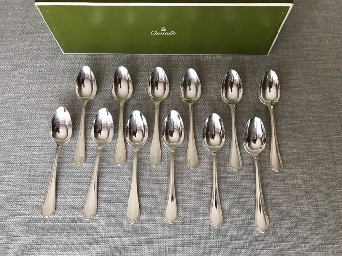 Set van 12 Christofle mokka- of espressolepels, model Spatour in verzilverd metaal.