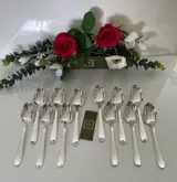 Set van 12 Christofle soeplepels, model Dax, in verzilverd metaal.