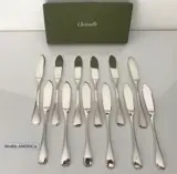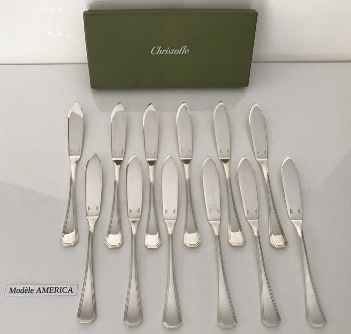 Set van 12 vismessen van Christofle, model Amerika, in verzilverd metaal.