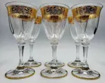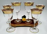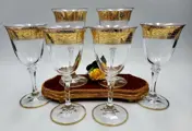 Prachtig servies van zes mousserende wijnglazen in hoog gebeiteld kristal, mondgeblazen en handgemaakt in vintage stijl door de Cre Art Srl kristalwinkel opgericht in 1968, gelegen in de provincie Florence, daterend uit de jaren 80/90. Een van de beste Toscaanse producenten. Zeer zeldzaam en zeer gewild. Allemaal handgemaakt en afgewerkt en gegraveerd met decoratie en snijwerk brede bandrand met bloemmotief in 24-karaats gouden diamantgravure Dit item is met de hand versierd door meestervaklieden met 100% hooggebrand goud.