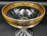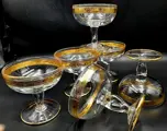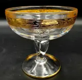 Set van 6 ijs- of fruitsaladeglazen. Afmetingen: hoogte 13,2 cm - diameter 14,1 cm in geslepen kristal, mondgeblazen vintage van Cre Art Srl Aurea decoratie, opgericht in 1968, gelegen in de provincie Florence daterend uit de tweede helft van de 20e eeuw. Een van de beste Toscaanse producenten. Zeer zeldzaam en zeer gewild. Allemaal handgemaakt en afgewerkt in 24 karaats goud in de bovenrand en in de basis, lange en gedraaide steel. Een uit duizenden. Dit item is met de hand gedecoreerd door meestervaklieden met 100% hooggebakken goud.