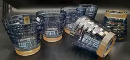 Set van 6 glazen voor vroeg in de ochtend sap, water of aperitief in kristal, vintage mondgeblazen uit Cre Art Srl collectie "Riflessi" model "Tokio Matt" gekleurd, opgericht in 1968, gelegen in de provincie Florence daterend uit de tweede helft van de 20e eeuw. Een van de beste Toscaanse producenten. Zeer zeldzaam en zeer gewild. Allemaal handgemaakt in twee kleuren. Een uit duizenden. Dit item is handgemaakt door meester ambachtslieden. Afmetingen: hoogte 9 cm - diameter 9,1 cm.