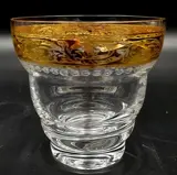 Set van 10 glazen voor vroeg in de ochtend sap, water of aperitief in kristal, vintage mondgeblazen door Cre Art Srl Aurea decoratie, opgericht in 1968, gelegen in de provincie Florence daterend uit de tweede helft van de 20e eeuw. Een van de beste Toscaanse producenten. Zeer zeldzaam en zeer gewild. Allemaal handgemaakt golvend in het midden en afgezet met 24K goud in de bovenrand. Een uit duizenden. Dit item is handgemaakt door meester ambachtslieden. Afmetingen: hoogte 9 cm - diameter 9 cm.