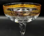 Set van 6 ijs- of fruitsaladeglazen. Afmetingen: hoogte 22 cm - diameter 14 cm in geslepen kristal, mondgeblazen vintage van Cre Art Srl Aurea decoratie, opgericht in 1968, gelegen in de provincie Florence daterend uit de tweede helft van de 20e eeuw. Een van de beste Toscaanse producenten. Zeer zeldzaam en zeer gewild. Allemaal handgemaakt en afgewerkt in 24 karaats goud in de bovenrand en in de basis, lange en gedraaide steel. Een uit duizenden. Dit item is met de hand gedecoreerd door meestervaklieden met 100% hooggebakken goud.
