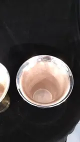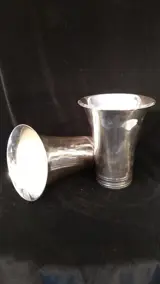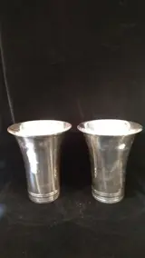 Paar vazen of zelfs water-/wijnfleshouders. Van het prestigieuze Italiaanse fabrikaat Daliana & Co. Uitgevoerd in verzilverd. Afmetingen: hoogte 20cm, breedte bovenaan 17cm. Totaal gewicht 3kg.