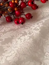 Lichtgekleurd damast tafelkleed, perfect voor zijn neutrale toon om elk servies te verfraaien, met een klassieke print. Een tafellinnen dat niet uit de mode raakt, vrolijk en makkelijk te combineren voor elegante gelegenheden. Het kan in de wasmachine gewassen worden en de kwaliteit is optimaal.